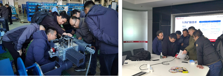 在本次培訓中,培訓的內容還包括拓展新產品、技改產品、更新換代產品及技術更新和服務策略開展綜合培訓。其中授課老師來自各產品線的產品經理、技術骨干,他們采用風趣幽默的語言,結合產品性能、技術詳細剖析如何為客戶提供精確的技術支持,并且帶領這批培訓的工程師深入生產車間現場學習、實操。